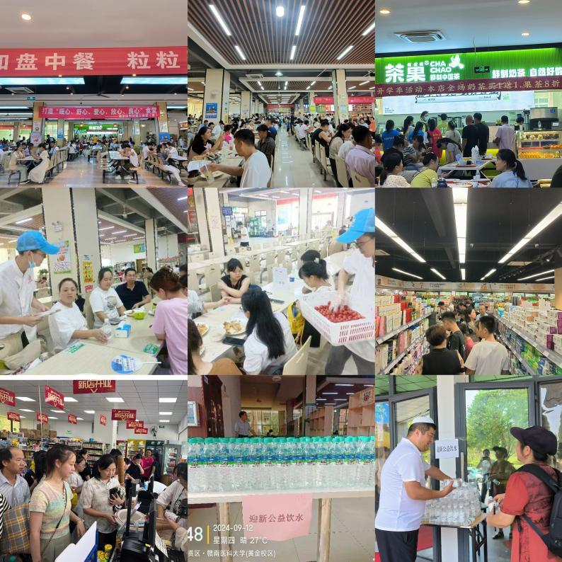 后勤商业餐饮中心提前一周开展了食堂、商超、全员食品安全、消防安全、服务规范操作培训和应急疏散演练等,加强食品卫生安全巡查,对餐厅商超进行清扫、消杀、通风,对炊具、厨具、餐具等进行全面消毒。为迎接新生的到来,黄金,章贡,龙南三校区提前做好饮食、商超物资储备,确保伙食、新生用品供应安全、卫生、充足。迎新期间,工作人员满负荷工作,为全校师生、家长提供了热情、温馨的餐饮、商超服务。