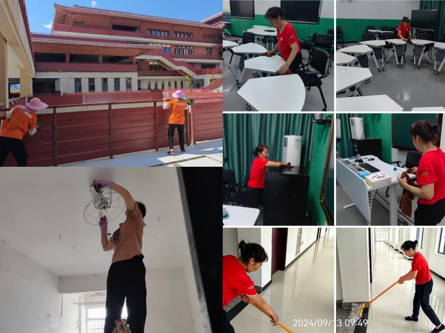 为给师生创造一个良好的学习生活环境,后勤绿化保洁中心不仅暑期放假“不打烊”,坚持做好清洁通风、消毒防害,清理楼栋、清洗窗帘风扇、垃圾清运等工作,在9月初,还对校园环境进行绿化美化,校园卫生开展精细保洁,在学校重点部位布花造景,迎新接待点、集中报到点设立宣传点,开展新生和家长的垃圾分类宣传工作,努力打造绿色后勤、文明后勤。新学期的校园清净优美、整洁舒适,让新生和家长赏心悦目、留恋忘返。