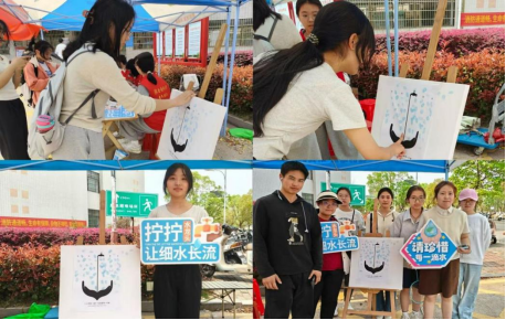 活动伊始,“争当节水宣传大使”环节便成为全场焦点,成功吸引了大批师生踊跃参与。现场,志愿者们引导师生们在油画布上轻轻按下指纹,每一个指纹都象征着一滴无比珍贵的水珠,生动寓意着水资源的汇聚过程。师生们完成指纹按压后,纷纷手持精心制作的节水标语,满脸笑容地与布满“水滴”指纹的油画布亲密合影留念。他们用这样极具仪式感的行动,向身边人乃至更广泛的群体,发出诚挚呼吁,号召更多人积极加入到节水行动中来,为守护地球水资源贡献力量。