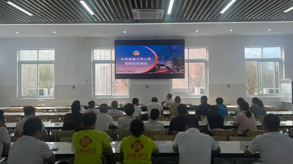 部署会议后,相关工作培训与实战演练同步开展。后勤保障中心餐饮管理科聚焦食品安全核心环节,开展专题培训,详细讲解食材采购验收标准、存储保鲜要求、加工操作规范及从业人员健康管理,确保每一位工作人员熟练掌握安全操作要点;保卫处消防科则针对食堂区域火灾风险特点,系统讲解消防隐患排查方法、灭火器等消防器材规范使用流程及火灾事故应急处置步骤,提升工作人员消防安全应急能力。